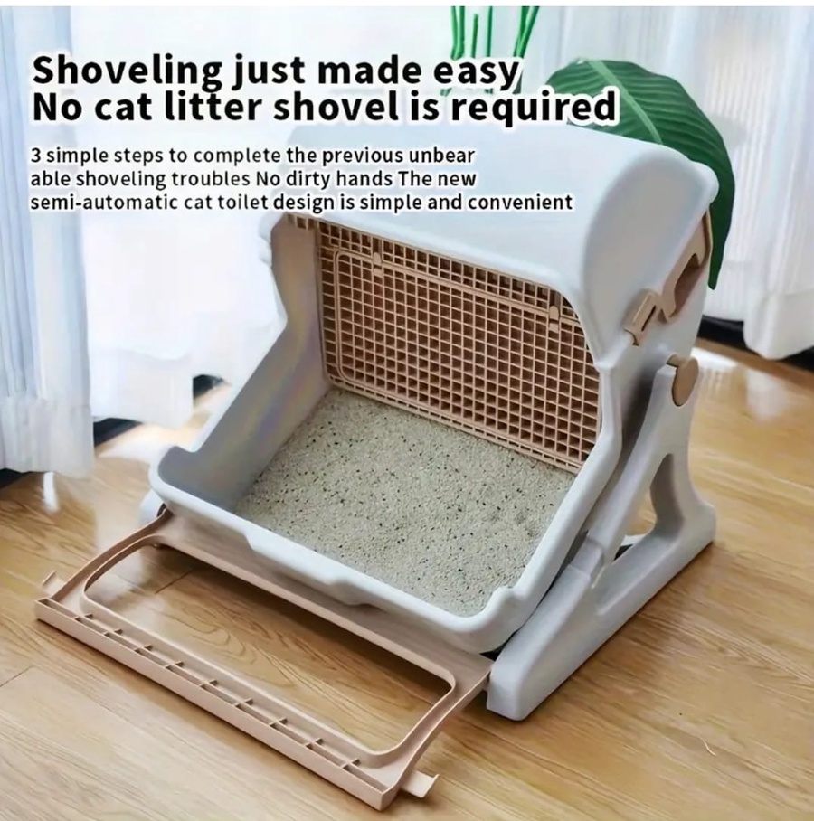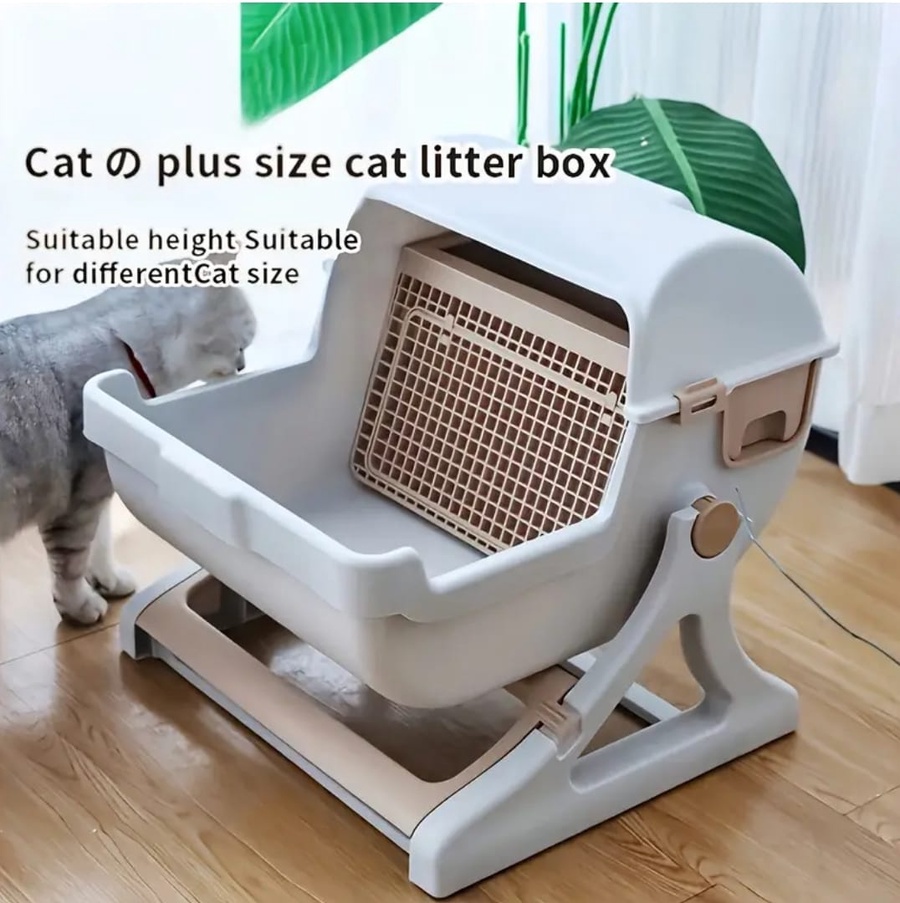 صندوق فضلات ذاتي التنظيف للقطط بغطاء صلب - لا حاجة