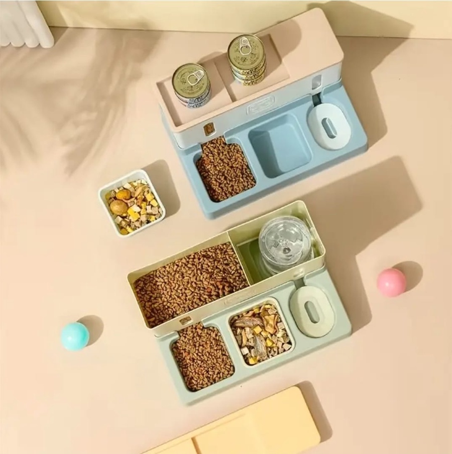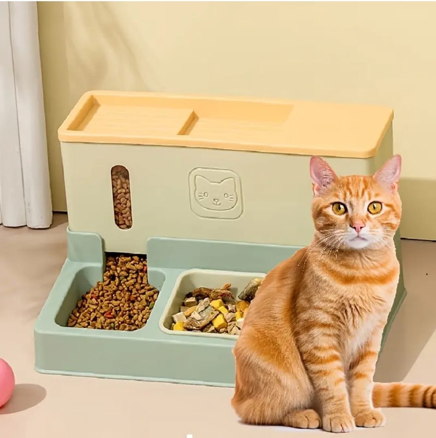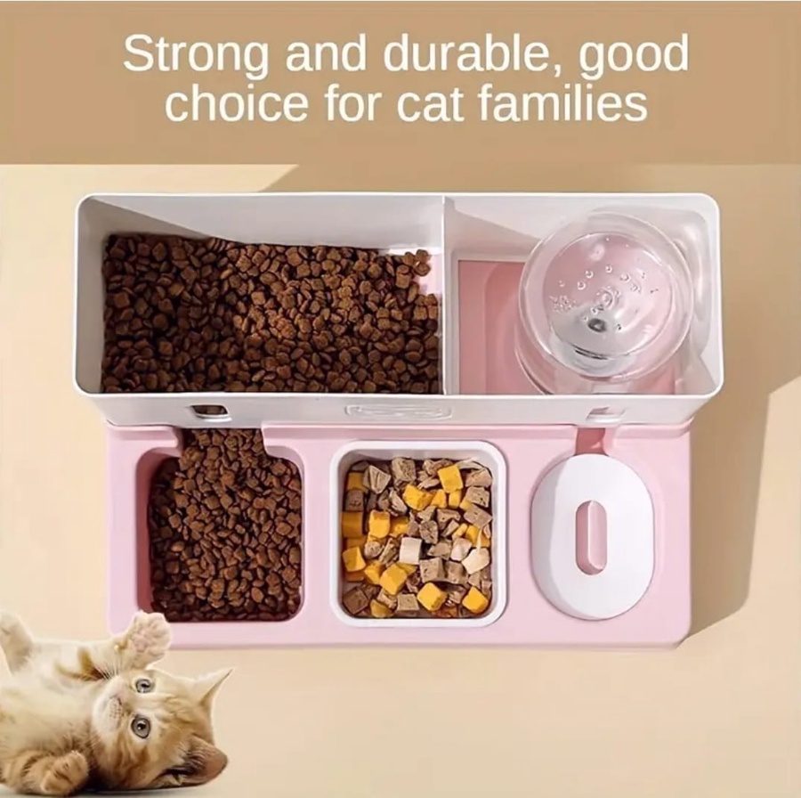 مغذي حيوانات أليفة ثلاثي الوظائف بغطاء محكم | تصميم ثلاثة أوعية بسعة كبيرة + رؤية الطعام المتبقي موزع مياه متكامل للحيوانات الأليفة، مناسب للقطط والكلاب مشاركة بين الحيوانات المتعددة، يجمع بين التغذية والري، نظيف وصحي 5097 تغذية متعددة القطط, تصميم مقاوم للانسكاب أدوات حيوانات أليفة عالية الجودة