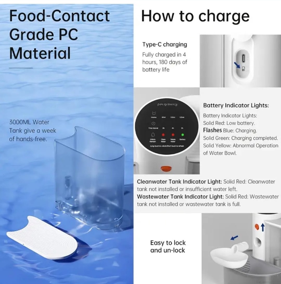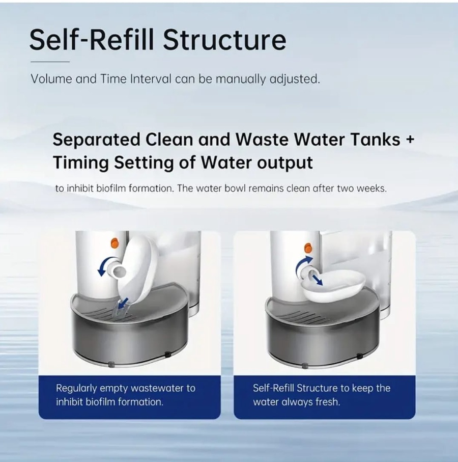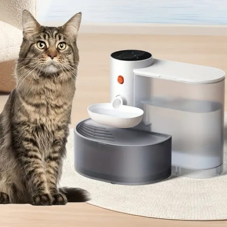 موزع مياه للقطط جهاز موزع مياه لا يحتاج إلى مستهلكات أو فلاتر مزود ببطارية ليثيوم مدمجة بسعة 2000 مللي أمبير ووظيفة شحن عبر USB، مع إمكانية ضبط حجم تعبئة المياه